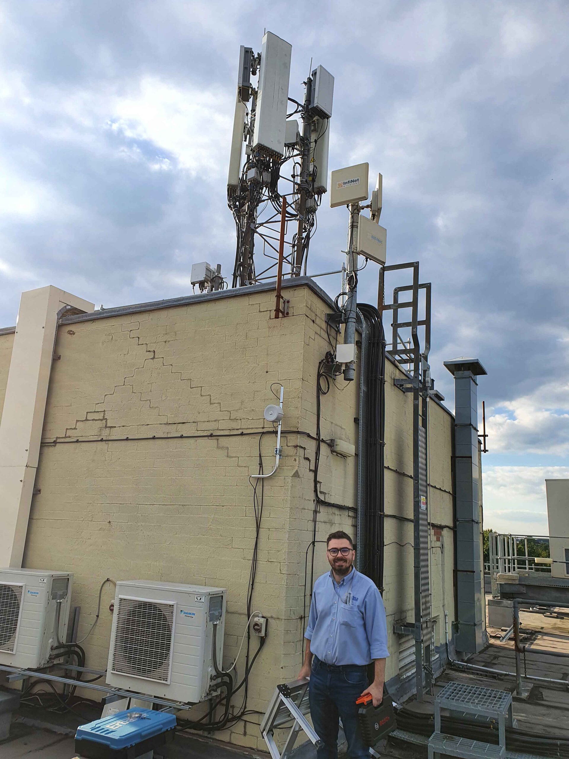 - We installed a 4G antenna manufactured by Mikroik to overcome the short term issue that the leased line wasn’t available. This was operational just 4 days from order and was only delayed that long because of bank holidays and building access.